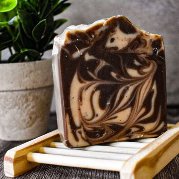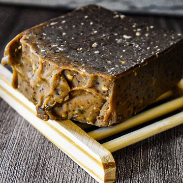 Black Coffee and Chunky Ground Oats with Coffee grounds infused with Ginger, Black Pepper and Vetiver.