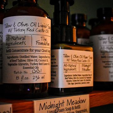 The Foundation is our signature concentrated liquid—thick, powerful, and filler-free. We use Red Turkey Castor Oil to make our nutrient-dense tallow water-soluble, ensuring a silky "slip" and a perfectly clean rinse. It’s the hardworking, amber-hued anchor of our liquid line.